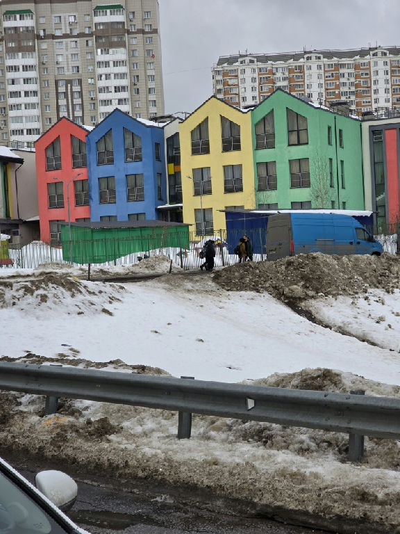 Летом район выглядит красиво: новые дома, разноцветные детские сады, детские площадки, речка. Есть зоны для прогулок.
